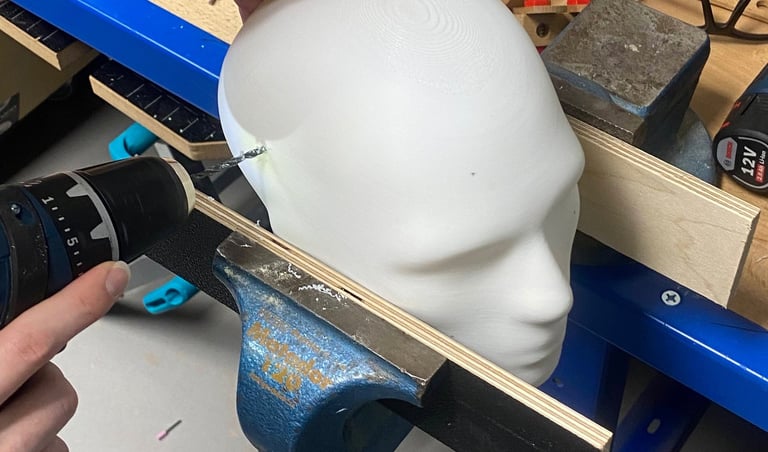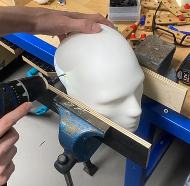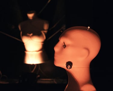 Projektet består af et industrielt metal-skab med transducerer påmonteret og dekoreret med en fastspændt gine Hertilhørende et mannequin-hoved iklædt drejeknapper, der styrer lyden af skabets rungen. Oplev værket i videoen nedenfor!